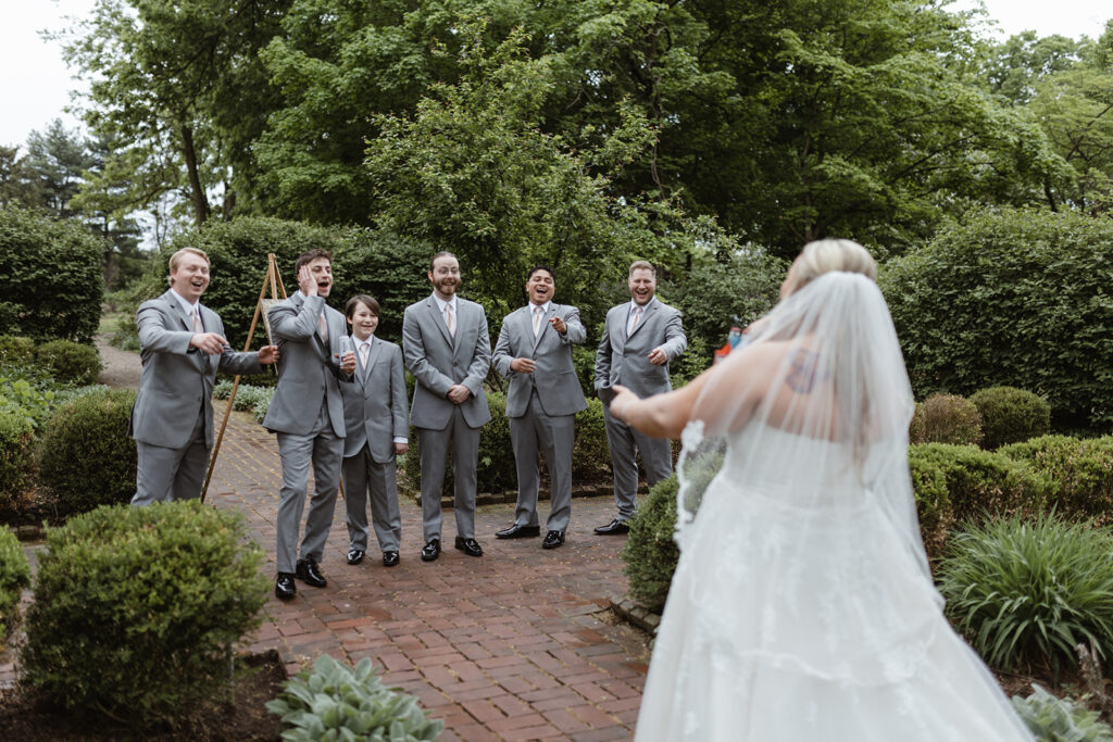 Madyson wanted to do a funny first look with the groomsmen and iced them… the reactions were priceless!