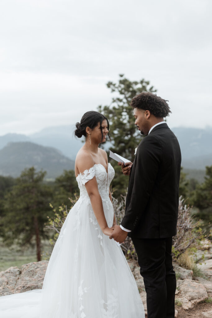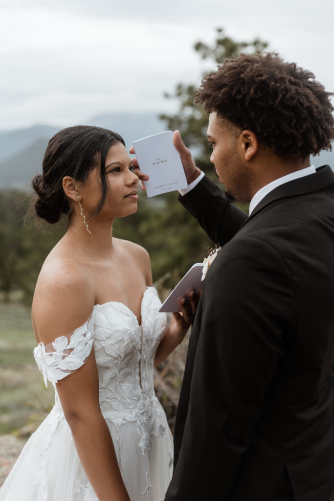 When Carmen and Kalab were planning their Colorado elopement, they had a vision in mind. They wanted something classy, something that showcased the stunning beauty of the Colorado mountains. And so, they decided to have a first look session among the mountains, and boy, did it turn out magical!